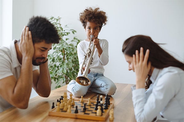 Narrator 1: A group of nobles are chatting. Suddenly, a trumpet blares. The room goes quiet.